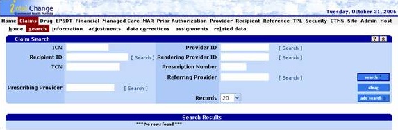 There are several search options available within the OR MMIS including: Search, Advanced Search, Mini Search and Pop Up Search panels.