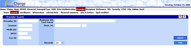 Some subsystems such as the provider data maintenance subsystem contain a search panel without an advanced search button included on the panel.