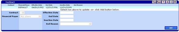 By clicking on a Maintenance Item Link (such as Contract), the associated panel opens.